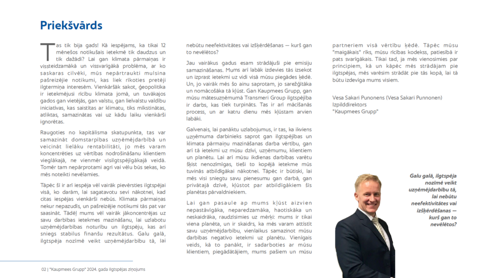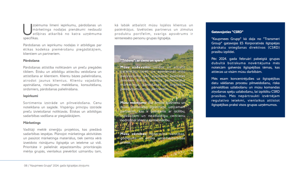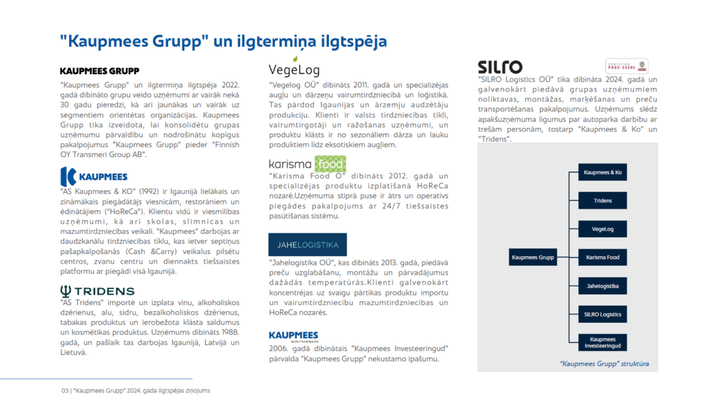 KAUPMEES GRUPP Ilgstpējības ziņojums 2024